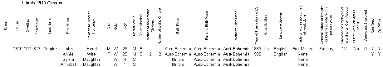 - Anna (Annabel) Pergler born 28 March 1909 in Chicago, Cook, Illinois