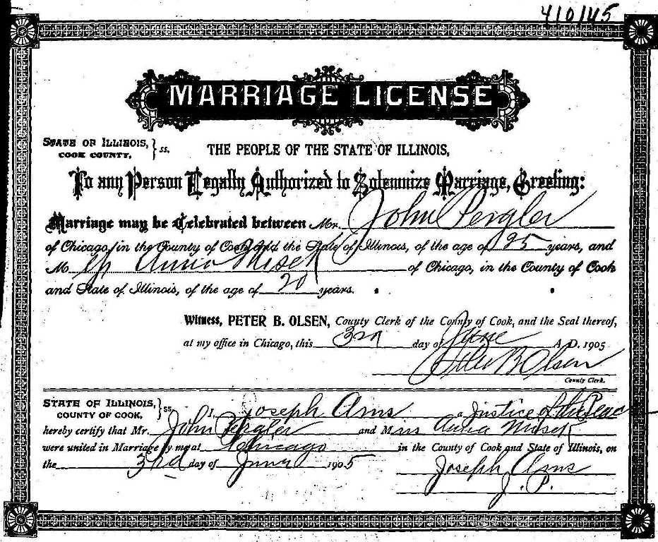 - Marriage Certificate - Illinois, Cook County Marriages, 1871-1920