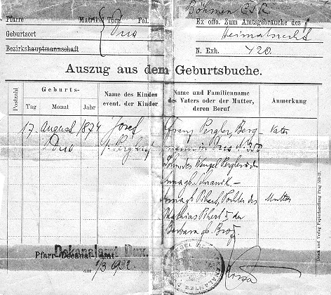 - Birth Certificate for Josef Pergler