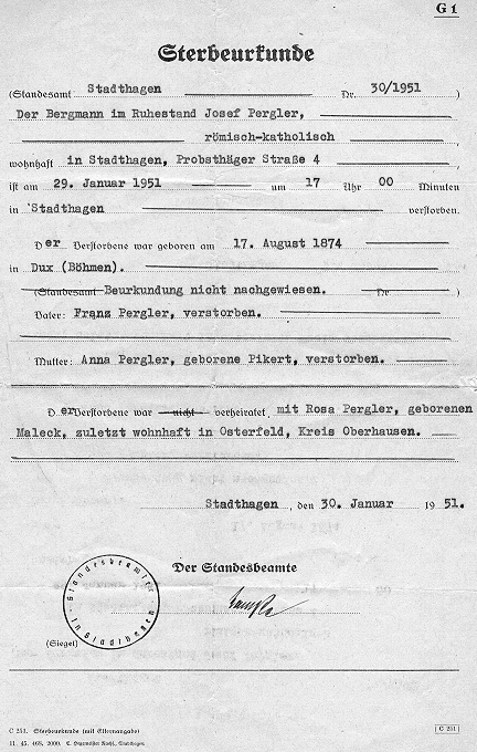 - Married to Rosa Maleck Pergler ... in Osterfeld, Oberhausen